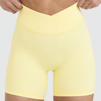 | High waisted shorts with a cross-over waistband design | |